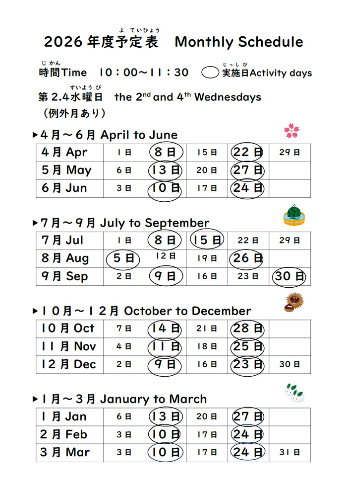 毎月2回 水曜日 10:00~11:30(主に第2、4水曜日)